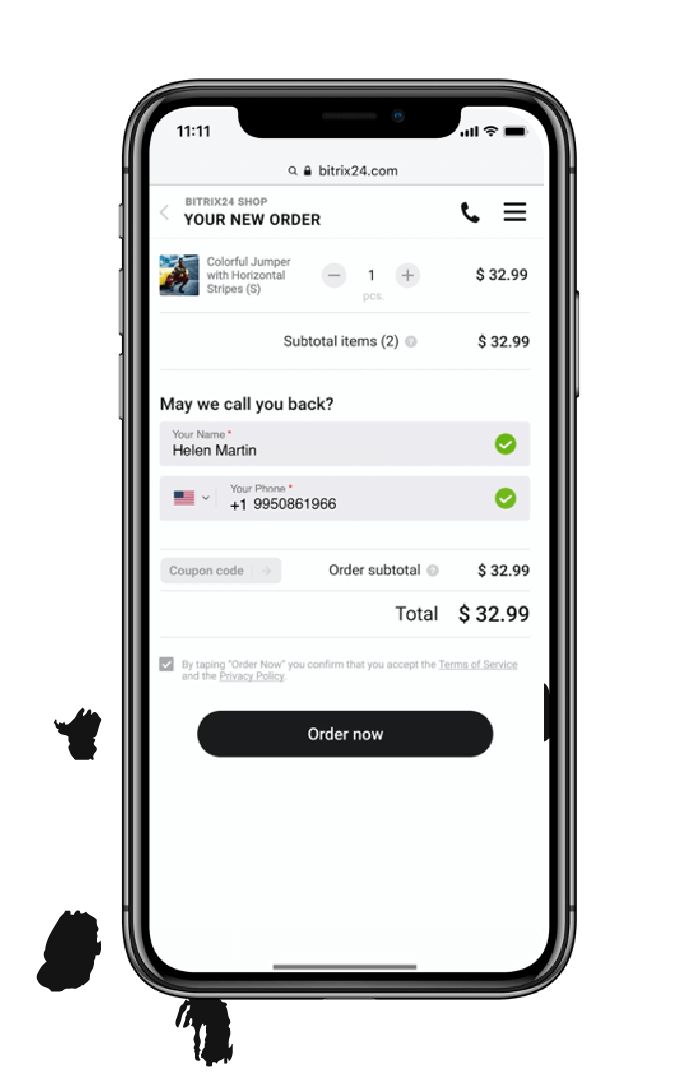 Сделать заказ очень просто — достаточно отправить имя и номер телефона. Остальное сделает продавец.